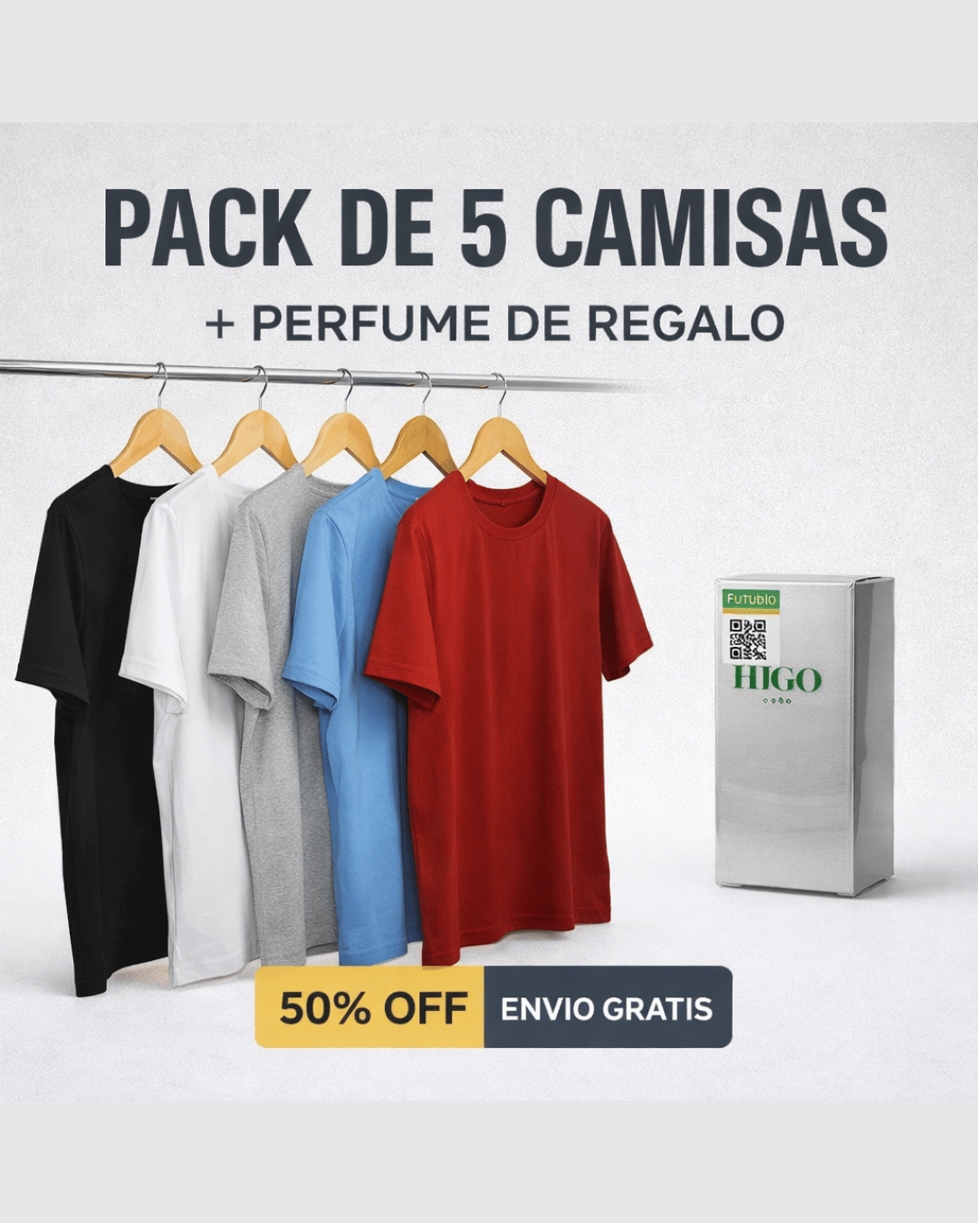 Ahorrar $75.100KIT X5 Camisetas + Perfume de Regalo